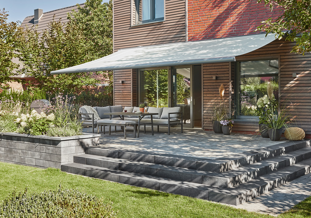 Vielseitig, funktional, begeisternd: Diese kompakte Kassetten-Markise bietet alles, was einen zuverlässigen Sonnenschutz ausmacht. Die ovale Kassette fügt sich stilvoll in jede Fassade ein und schützt Tuch sowie Gelenkarme vor Wind und Wetter.